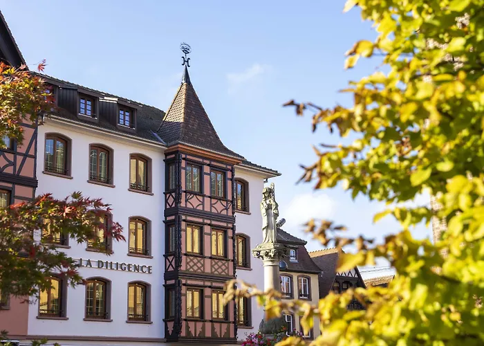 Hotel La Diligence Obernai met 33 kamers biedt gemakkelijke tot de Kerk van Sint Pieter en Sint Paulus, gesitueerd binnen 6 minuten wandelen hiervandaan. Gasten kunnen restaurant Le Comptoir en de lounge bar bezoeken in het 4-sterrenhotel op een uitstekende locatie in Obernai.